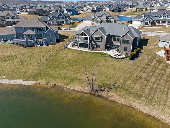 Built by Timberlin Custom Luxury Homes, this exceptional quality crafted home has a full fin. walk-out/daylight LL. Over 5360 SF of fin. living space and located on a prime 1/2 A waterfront lot. A detailed list of quality features is included in the listing documents. The foyer leads into an open floor plan main level with engineered hardwood flooring. The elegant great room has a wall of windows with scenic pond views and a 56" linear fireplace flanked by built-in cabinets. Spacious dining area and professionally equipped cook's kitchen with oversized island, walk in pantry, and home office with built in cabinets, bookshelves and desk. Large laundry room with an abundance of cabinets and sink. Two en-suite main level bedrooms each with ceramic tile walk-in showers. The master closet is a dream come true! Unique amenities include 36" doors, an elevator, and a continuous sidewalk access connecting the front yard to the back patio. An open staircase leads to a walk-out LL featuring a cozy family room with fully equipped wet bar, 18x14 home theater with tiered leather reclining seating and 114" projection screen. 16x13 music room with sound deadening dry wall and fully insulated walls and ceiling. 3rd en-suite bedroom, additional full bath and 4th bedroom currently used for a home office is rough plumbed for future bathroom. This one-of-a-kind home is perfect for the gourmet cook and tech savvy enthusiast ! RWC transferable structural warranty.
