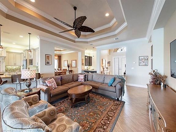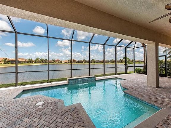 An enchanting surprise awaits behind the gated courtyard of this classic, Bermuda-inspired home. Enter the foyer & be welcomed by the expansive lake view...one of the best in Riverstone! This coveted Carlyle floor plan home has been perfectly designed for entertaining with a warm & spacious main living area that opens to an expansive covered lanai (expanded over 13 feet) with a sparkling pool. Thoughtfully crafted & meticulously maintained, no detail has been overlooked in this like-new home. Luxurious appointments include an extensively upgraded model view gourmet kitchen, model view wet bar, beautiful spa-like baths, crown molding, solid core doors, central vacuum, 24x24 tile, DC ceiling fans, designer lighting, window treatments & numerous pocket doors for added openness. The multi-functional club room works well as an office, guest space or extra living room. A finished laundry with plenty of cabinets, counter space, sink & front load GE W&D. Riverstone offers a social, vacation-inspired lifestyle for all ages. Including fitness facilities, social hall, resort & lap pools, spa, 5 Har-Tru tennis courts, basketball & pickleball courts, tot lot & a full-time activities director.