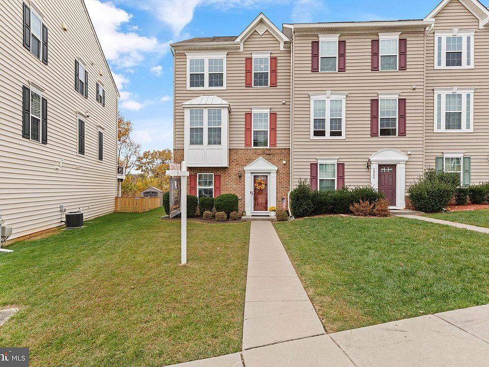 Introducing an Exceptional End-of-Group Townhome with Over 2,200 Sqft of Living Space. This end-of-group townhome effortlessly combines, functionality, and modern living. With a partial brick front, this home offers a timeless and attractive curb appeal. Spread across three impressive levels, this residence boasts a total of 4 bedrooms, 2 full bathrooms, and 2 half bathrooms. Upon entering, you'll be captivated by the versatility of the entry-level bedroom. Whether you need a private office space or a playroom for the kids, this room provides endless possibilities to suit your lifestyle. The first and second levels feature soaring 9-foot ceilings, which not only add to the sense of space but also allow an abundance of natural light to flood in, creating a warm and inviting atmosphere. The main level is designed for comfort and relaxation, featuring a spacious family room complete with a cozy gas fireplace. It doesn't end there; step outside through the walk-out access to the fenced-in backyard, providing an excellent area for outdoor gatherings, play, or simply unwinding in your private oasis. The second level is a true highlight, featuring rich hardwood floors that flow seamlessly throughout the living and kitchen areas. The kitchen is a chef's dream, equipped with top-of-the-line stainless steel appliances, gorgeous granite countertops, 42" cabinets, a stylish backsplash, and a generously sized island. This space offers not only practicality but also a modern aesthetic that is sure to impress. There's also a dedicated area for a dining room table, perfect for hosting family and friends. The open layout here fosters a sense of togetherness and ease of living. Escape to the maintenance-free deck, where you can savor your morning coffee or entertain guests while taking in the tranquil views of the yard, which backs up to a serene wooded area. The upper level is a true retreat, featuring the primary bedroom with an attached full bathroom and a spacious walk-in closet. The primary bathroom is a spa-like haven, boasting a double sink vanity, a relaxing soaking tub, a walk-in shower. Additionally, you'll find two extra spacious bedrooms, another full bathroom, and a convenient laundry area on this level. Community living is enhanced with a range of amenities including a swimming pool, clubhouse, playground, and scenic walking paths, offering endless opportunities for recreation and relaxation. Conveniently located, this townhome provides easy access to major transportation routes, including I-95, and is in close proximity to APG (Aberdeen Proving Ground) and Bel Air shopping, ensuring that daily necessities and entertainment are always within reach. Experience the pinnacle of townhome living in a beautifully designed and thoughtfully appointed space that meets the needs of modern life. Don't miss your opportunity to call this remarkable property your new home!