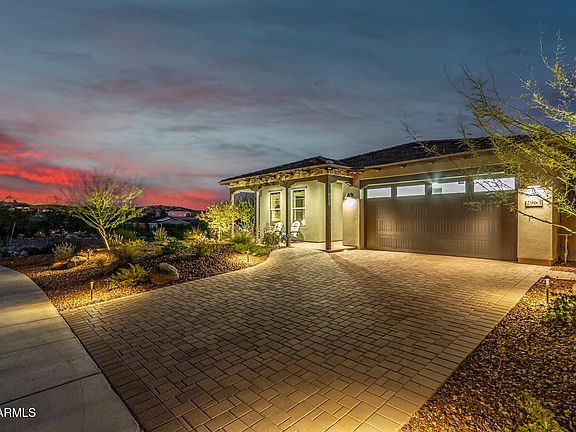 Impressive IRONWOOD model with Amazing Views! Perched on an elevated lot with no neighboring homes to the south or east sides. Featuring 3 spacious bedrooms, 2.5 bathrooms, wood flooring, extended front bedroom suite and 4ft extended garage w/220V. Gorgeous kitchen is fully equipped w/abundant white cabinetry w/ crown moulding, marble backsplash, honed matte finish granite counters, large island, gas stove & top of the line stainless appliances. Just off the kitchen is a large laundry room with cabinets, tile flooring & walk in pantry. Multi pane glass sliders lead to the covered patio where you will experience the perfect outdoor living with stunning views and landscape upgrades of 170k, featuring a pool with electric heating & cooling, jets & beautiful water feature, gas fire pit, synthetic grass areas, putting green, stone pavers, misting system, view fencing, BBQ area & raised garden. A few more upgrades include - an Aqua Sauna water filter system throughout, Extra-large propane tank, Custom front security door, Electric line along eaves for easy lighting install. Enjoy all the Amenities & Lifestyle Wickenburg Ranch has to offer - 2 Golf Courses, Pickleball, Tennis, Community Pool, Spa, Restaurants and more! Make this gem your dream home today!!