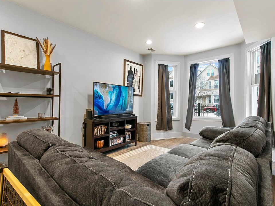 Beautiful 2020 gut rehab right on the border of Logan Square and Avondale. This 1100 sqft unit features in-unit laundry, central a/c, massive living room perfect for entertaining, a beautifully remodeled bathroom, fully gutted kitchen with separate dining area and a large shared yard. 3 decently-sized bedrooms (queens or fulls) make for the perfect work-from-home setup. Walking distance to Avondale Bowl, Sippin' Turtle Cafe, Sleeping Village, the Belmont Blue Line and so much more. NO SECURITY DEPOSIT! $500 non-refundable move-in fee, $50/mo for garage parking, $50/mo for pets fee covers 2 pets). Available July 1 or July 15. 1-year lease minimum. Move-in fee of $500. Pet fee of $30/mo, no dogs over 60lbs. Garage parking available for extra $50/mo.