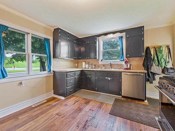 Welcome to farmhouse living on ACREAGE! Nestled on a sprawling 1 acre lot. This picturesque property is ideally situated, providing convenient access to a multitude of amenities and attractions, including trails, parks, shopping, restaurants, schools, and more making it the perfect blend of tranquility and convenience. Featuring 2 main floor bedrooms and bathroom, large open kitchen, and timeless charm throughout. This house is ready for you to make a home. Outside you will find an oversized detached 2 car garage and lots of room for gardens, exploring and more. Please note, renters currently live in the property and pictures are from prior listing of the home!