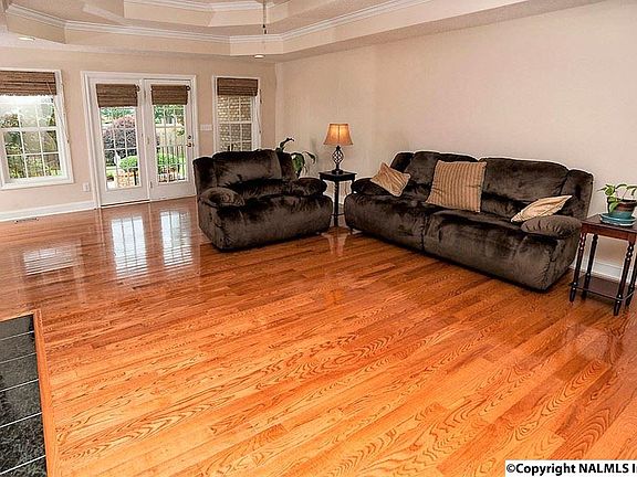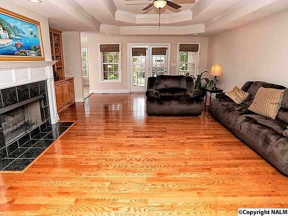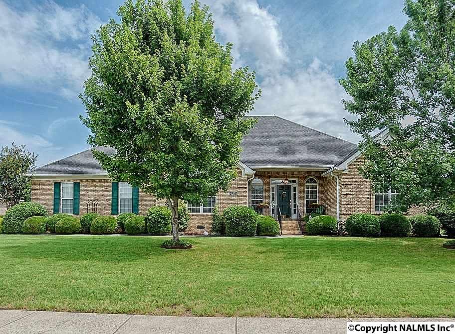 Gorgeous full brick home conveniently located minutes away from I-65, I-565, Huntsville International Airport, and Redstone Arsenal. Spacious great room featuring gleaming wood floors, trey ceiling, recessed lighting, built-in bookshelves, & a nice gas log fireplace! Kitchen is equipped w/ stainless steel appliances, tiled backsplash, a pantry, & ample cabinets great for storage. Tiles throughout the kitchen & breakfast area. Isolated Master suite includes trey ceiling, carpet, a glambath w/ double vanities, tiles, a separate shower & a nice soaking tub! Enjoy the beautiful landscaping outside the covered patio overlooking the huge privacy fenced backyard. Call now for an appointment!