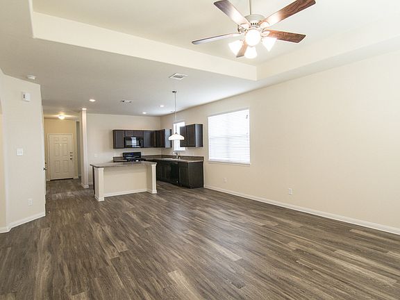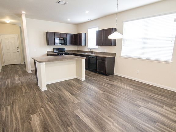 The Ellington floorplan is a fantastic two-story home with 3 bedrooms and 2.5 baths. View from kitchen to breakfast area and family room. Spacious downstairs master suite with two generous bedrooms and a game room upstairs. Features wood-grain vinyl plank flooring, two two-car garage, fenced backyard, and a sprinkler system. All homes are SimplyMaintained for a $100 monthly fee that includes front and back yard lawn care and exterior pest control. This property allows self guided viewing without an appointment. Contact for details.