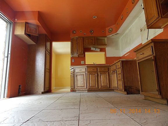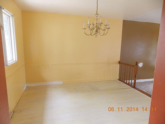 Three Bedroom, 2 bath tri-level, step down living room, dining room & eat in kitchen family room with fireplace. 2 car garage, backing up to the lake. Property being sold-AS IS. Buyers responsible for any and all repairs & violations. No survey No termite provided by seller. Buyer to a $299.00 technology fee at closing.