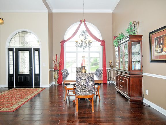 Very popular Kensington Grove!!!Executive home w/over 4000 sq ft.4 BR's 3 ½ baths.Extra deep 3 car gar.Walk out finished bsmt.17'Foyer w/hardwood,12'ceilings,crown mould,arched window w/plenty of light & 5 ¼ base.19'FDR w/14'ceilings,casement windows,chair rail,crown mould&arched windows.Large Great rm,Brk rm plus hearth rm.Beautiful MBR w/jetted tub&glass blocks&separate W/I shower.Jack & Jill bath.W/O lower level has 9' ceilings,family rm,wet bar w/Granite tops,theater rm & full bath.