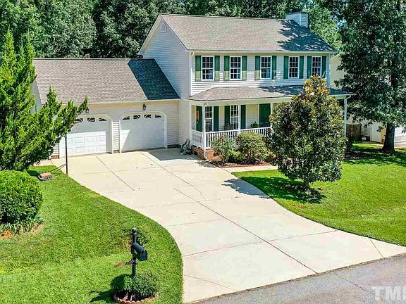 Multiple Offers Received. Beautiful 4 bedroom home w/rocking chair front porch. Home sits on over half acre, flat, fenced, lot, that backs up to the woods. Deck and Patio are perfect for entertaining. New LVP flooring. Recently painted interior. Roof replaced in 2018. Smooth ceilings. Over-sized finished and painted garage. Storage shed conveys, for even more space. Less than twenty minutes to downtown Raleigh. No City Taxes. HOA is $100/ year. Smaller Neighborhood.