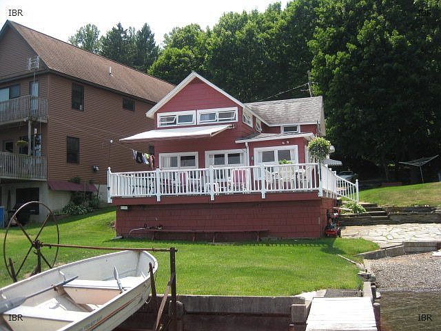 50.9' of Level West Side Owasco Lakefront.Very Clean and family freindly cottage at the waters edge. Great views. 4 bedrooms 1 bath with nice sized livingroom and dining room overlooking the lake. Kitchen has anoth dining area. Large lakeside deck. Completely furnished includes almost everything inside, the deck furniture, dock hoist and boat.i car detached garage. Blacktop drive down from RT38.