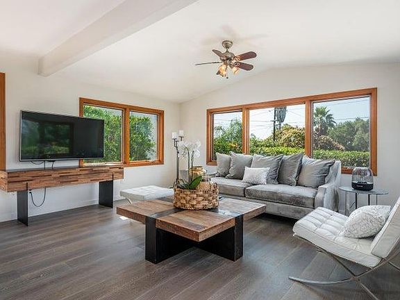Remodeled custom home in Lower Mission Canyon, just off a quiet street near San Roque walking distance to the Museum of Natural History, the Mission, and Upper State St. This updated single-family home features a gourmet kitchen with a Wolf range, Thermador fridge, and quartz countertops. Enjoy wide plank French white oak floors, central AC, an RO water filtration system, large-capacity washer/dryer, Ring alarm, fireplace, and 220V EV charging. Outdoor spaces include a private front garden with an entertaining patio and a second patio in the enclosed backyard. Fruit trees on the property include Meyer lemon, orange, avocado, and olive. 2-3 off street driveway parking spaces. Gardening and trash included. Available unfurnished on a 10 month to 1-year lease. Ten month to one year lease. Unfurnished. No smoking. One small dog allowed with pet deposit