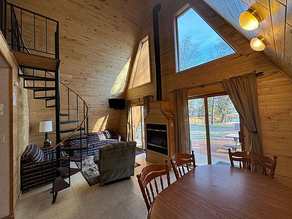 Last Chance! All Sellers units have sold and this new listing is the last one available! Excellent opportunity to be on the famous Turtle Flambeau Flowage! This move in ready year-round chalet-style condo cabin can be your home away from home, plus offers nice rental income. Enjoy 4 acres featuring a beautiful firepit peninsula area with panoramic lake views &1200’ of gorgeous level frontage, shared with only 5 other units. The bay area offers great swimming and protection from high winds while the grounds are groomed with red granite lighted walkways. Inside you’ll find an open concept with knotty pine, in-floor heating, gas fireplace, 2 lakeside patio doors, full bath, utility room & one bedroom on each level. All appliances, dishes, furniture, bedding & picnic table are included! Bring your boat, snowmobile, UTV or swim floaty and be one of the elite few owners on this incredible 19,000 acre “Crown Jewel of WI” that is mostly all State owned!