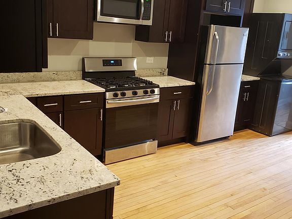 Recently Rehabbed 2 Bedroom Apartment in Avondale just blocks from Logan Square. Quiet street located only 0.5 miles from the Belmont Blue Line and 90/94 Expy. In-unit laundry! Cable Ready, High Efficiency LED Lighting throughout. Bonus Sunroom off kitchen perfect for a work day office or an indoor garden. Huge eat in Chef's Kitchen. Deluxe Stainless Stove with cast iron burners. Granite Countertops, 42" Shaker Cabinets, Dishwasher, Microwave Hood with Vent Fan. Large fenced in yard with patio BBQ area. Two car garage available. Rent the whole garage and cancel your off site storage to save money. $300 mo. or rent one spot for $150. Close to Hopewell Brewery, Kurowski's Deli, Sleeping Village, Giordano's, Gap Outlet, Dante s Pizza, Cermak s Fresh Market, Binny's, and Kosciuszko Park. Walking distance to Belmont Blue Line and #77 and #56 bus routes. Credit check required. Cats allowed. Managed by caring owner. Tenant pays gas heat, Internet and electrical. Available for May 1st move in. $325 move in fee instead of security deposit. Garage parking with storage available for $150 mo. Cats allowed. No dogs.