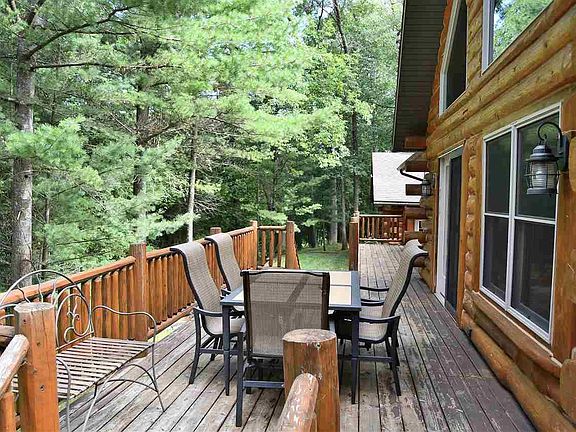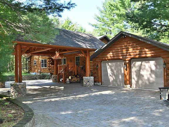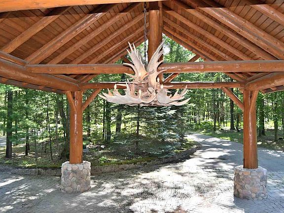 WOW...Is all you will say when you enter through the gated entry. As you drive up the scenic drive you are welcomed to the spectacular log home where you enter under a large log portico with antler light fixtures and brick pavers. Home is situated on 10 private wooded acres with 621 feet on the Rifle River. You will enter into a large foyer and then onto the large open great room illuminated with lots of natural sun light with vaulted wood ceilings and a beautiful floor to ceiling stone wood burning fireplace. From here you walk through the french doors to the over sized deck, over looking the river. There is majestic viewsof nature seen by every angle of this home. A split floor plan has the private ensuite with more French doors that open to a deck with a covered hot tub. Two nice sized bedrooms at the other end. A hand carved stairway leads to a loft/den area for a private office or use for your very own space or an extra bedroom. All this, along with a 4 car garage, a separate bunk house with electric, heat and air that sleeps 4, Extensive brick pavers & firepit as well as an over sized garage that is used as a studio with a 1/2 bath and a partial kitchen area for extra guests. There is a full house generator. This is a perfect place to hunt, fish, snowmobile and ride. Plenty of room to store all your toys. Road Maintenance is $125.00 per year. ** ATTENTION ALL Buyers attending a showing must sign SHOWING CERTIFICATION and RELEASE PRIOR to showings ** All attendees wear facial covering... make sure buyers avoid touching all surfaces...please remove shoes... once showing is complete, please sanitize all light switches, door handles, lock box, etc... and finish showing with extended conversation(s) outside