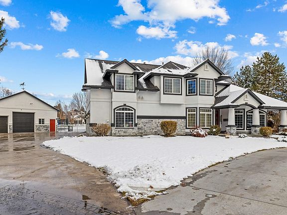 Welcome to your year-round oasis! This Redwood Creek 1 acre estate is quick to impress. Substantial renovation in last 2 years including a new heated pool, spa & sport court. 7 bedrooms; one on the main floor could be an office. 1.5 baths downstairs. The brand new kitchen boasts a beautiful island, Thermador gas range+ 4 ovens, 3 sinks, 2 dishwashers & a prep area. The generous master suite has a balcony, brand new bathroom with soaker tub, large shower and huge walk in closet. Upstairs you'll also find 5 more bedrooms, laundry room & large bonus room. Outside you are greeted with tranquility, beauty & privacy. Covered patio with outdoor kitchen. 35'x31' Shop has power, water & sewer along with barn option. 2 horses or cattle allowed by HOA. Or convert this to a 2nd living quarters. Situated in the heart of Eagle, just minutes away from Eagle Island State Park, the Boise River & downtown Eagle, this home is value and beauty at its best. Virtual tour link has a video, more photos & walkable floor plan.
