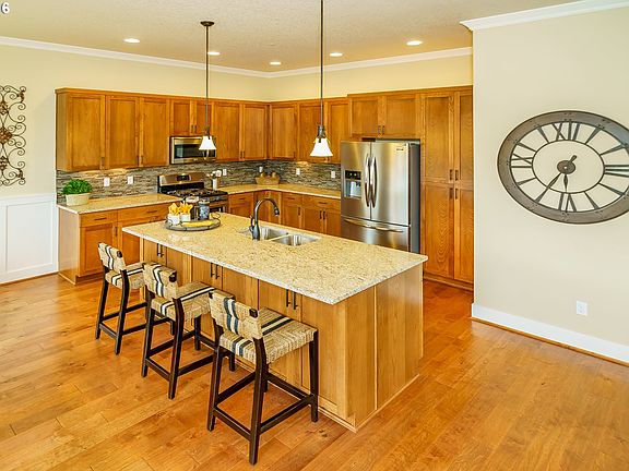 Close quick! Beautiful wooded area of Grande Pointe at Villebois. Bordeaux features full granite kitchen with island under cabinet lighting. Open flowing floor plan great for gatherings. Hardwoods on main level, upgraded carpet. Plenty of closets and storage space including a tech area plus an office. Generous room sizes. Fully landscaped front yard with sprinkler, fenced back yard, Neighborhood backs to Grahams Oak Nature Park