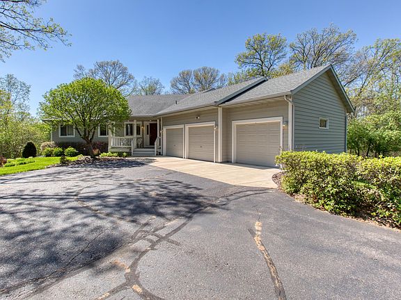 This custom built, stunning walkout rambler has been beautifully maintained and cared for! Warm and inviting kitchen area with granite countertops. Four season porch with vaulted ceilings. Three bedrooms on the main floor and two in the lower level. Master walk-in closet and whirlpool tub in master bath. Lower level family room with kitchenette and wet bar for entertaining! Established neighborhood with mature trees and wildlife surround this property! Privacy out your back door! New roof to be installed September, 2022.