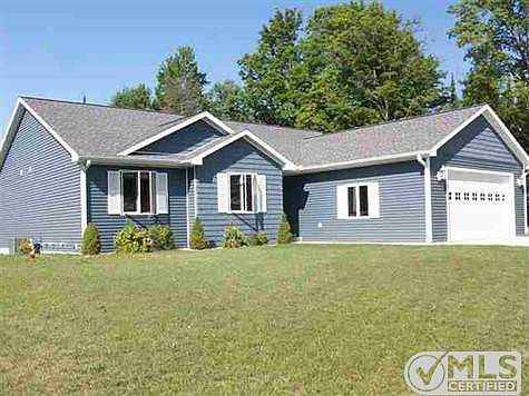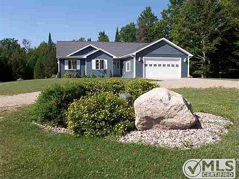 If you're thinking of building your new home you should take a look at this one before you do. Well thought out open floor plan with Large living room, dining room & kitchen open for entertaining. Open ceilings, & tasteful colors thruout the home. Home was built in 2008, Central Air, outside wood burner to supplement the Propane forced air furnace. Full unfinished basement with high ceilings & egress windows providing nice view of the back yard. 2 Car attached garage w/ large pole type storage building used for firewood & the toys. House sits off the road for privacy & sliding door opens up to pation & firepit for enjoying the outdoors. Large bedrooms, master bath, you name it this is a must see if you're thinking of building new & you could be in time for school this fall. Brokered And Advertised By: STATE WIDE REAL ESTATE OF ESCANABA Listing Agent: TIM GEORGE