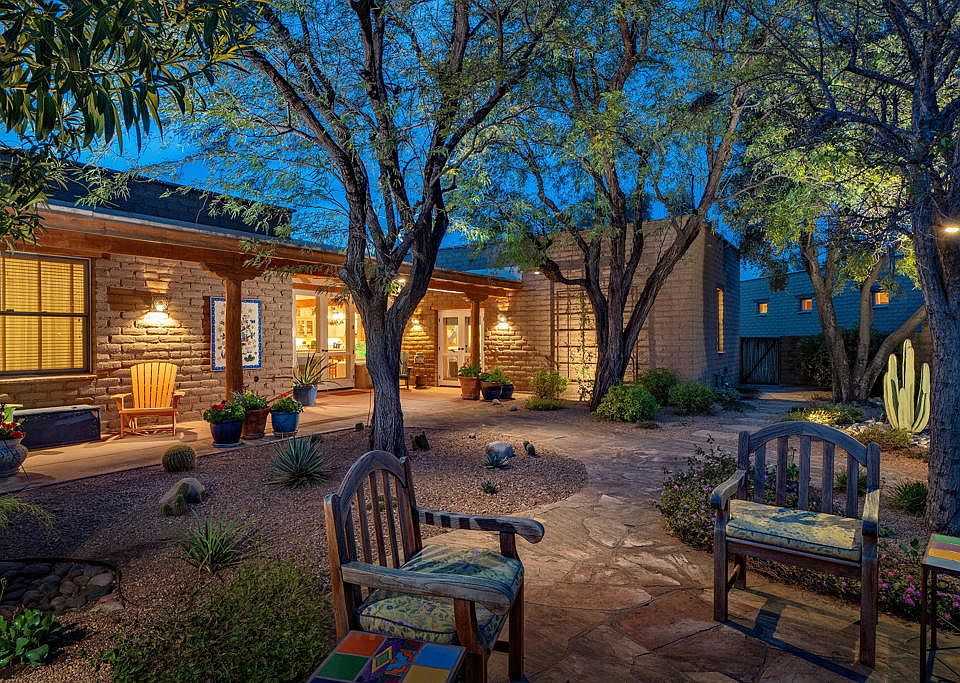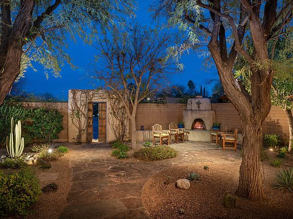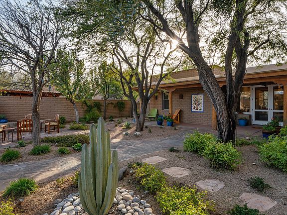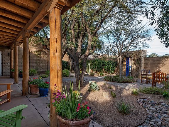 Enter through a two foot thick, antique gated buttress, into a living environment with a sense of permanence & an architectural feel that is a reflection of the rich & lush desert landscape. Thoughtful design blends indigenous architecture with environmentalism through use of sustainable materials and landscape design. A collection of clean but variously textured walls provide a visual study of its environment. This authentic mud adobe provides a composition of architectural layers inspired by the natural surroundings, bringing honesty to the design. The open concept floor plan is all about flow of space, with a large great room, flanked by a dedicated master wing and secondary bedrooms. The kitchen is equipped with the highest quality finish level, including custom knotty alder cabinetry, hand-painted talavera tiled counters and top end stainless steel appliances. The kitchen overlooks the great room out onto the oversized private front courtyard. Large French doors and walls of glass blend the interior and exterior spaces opening out onto the various outdoor spaces meandering through the surrounding landscape, playing off light and shade, openness and enclosure, making for an inviting ambiance. Elegance and a sense of peace is easy to achieve in this laid-back brand of luxury, ideally suited for the southwest desert lifestyle. This unique property offers a series of reclaimed architectural elements, offering its occupant a sense of being a well-traveled home that is still going places. If you're looking for the true ''Tucson Lifestyle," look no further!