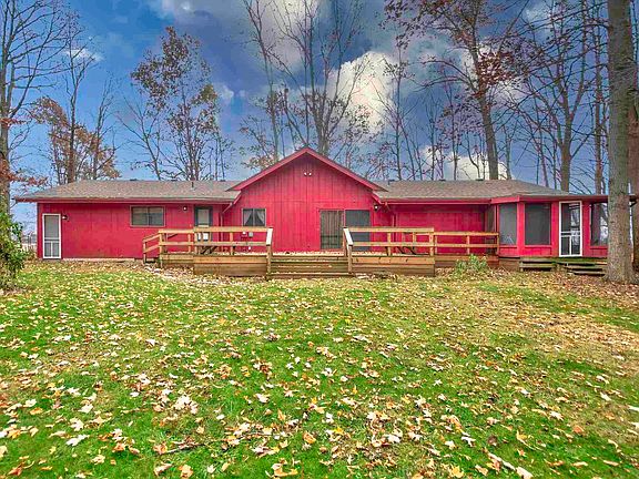 Sitting on approximately 8.5 acres of beautiful country terrain is this single story, A-frame style home that has been owned by the same family since it was built in 1981. This unique property sits on the Northside of 218, and has approximately 4.5 acres of woods, and 4 acres of bare/tillable ground. There is an oversized 2 car attached garage, as well as a 30'x48' pole building that has concrete floors. Upon entering through the front door of the home, you immediately notice the 15' cathedral ceiling, and the stone wood burning fireplace. The kitchen features a great amount of countertop and cabinet space, as well as a breakfast bar. Main floor laundry, as well a half bath are located directly off of the kitchen. The full bathroom has a walk-in shower, and is handicap accessible. The master bedroom connects to the full bathroom, and also has its own private enclosed porch to enjoy all the peace and quiet that nature has to offer. The partially finished basement has a large rec room, wood burning stove, and mechanic's room. There is a large three-year-old 42'x16' back deck, that is perfect for relaxing and entertaining. Many possibilities and opportunities with this country charmer. Cash or Conventional financing only.