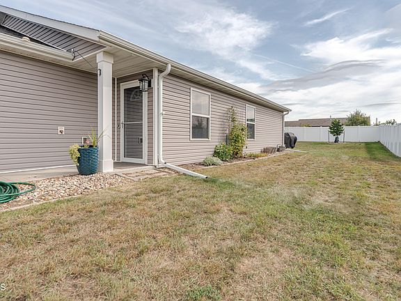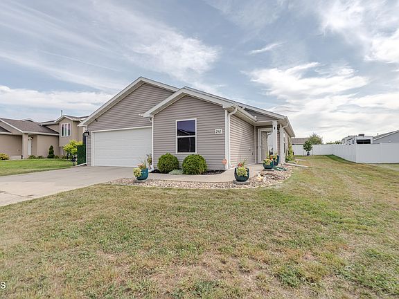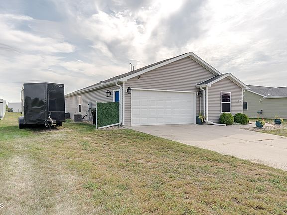 Don't miss the opportunity to own this beautifully designed slab-on-grade home, offering the ease and convenience of true single-level living with no steps throughout. Thoughtfully laid out with a smart floor plan, the home provides privacy and comfort for both residents and guests. The open-concept living, dining, and kitchen area is bright and welcoming, filled with natural light from large windows and complemented by recessed lighting. The kitchen is well-equipped with a center island, pantry, composite sink, and stainless-steel appliances, including a four-drawer refrigerator with a bottom freezer and a brand-new stove (2025). Patio doors off the dining area lead to the backyard and patio, perfect for outdoor entertaining or quiet relaxation. Durable laminate and vinyl flooring flow throughout, making maintenance a breeze. The spacious primary suite features a walk-in closet, and a private bathroom. Two additional bedrooms and a full bath round out the interior living space. Outside, enjoy a partially fenced yard, a two-stall heated garage, and a 3-foot rock border surrounding the home. Recent updates include newer gutters and shingles, a new shed on a concrete foundation, and a recently finished & insulated garage with added heater & insulated garage door. This move-in ready home combines comfort, functionality, and low-maintenance living in one perfect package. TURN YOUR DREAMS INTO AN ADDRESS & CALL TODAY!