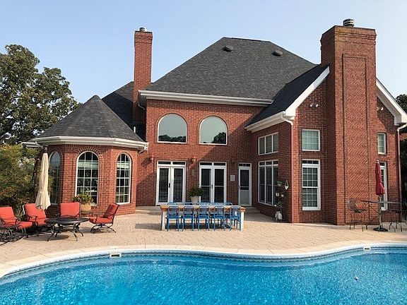 One of the premier homes in the Harrison, Ar area! Nestled onto a private 2.62 acres overlooking the Ozark Mountains, this edge of town setting provides privacy and convenience. This custom built brick home has approximately 7355 sq ft with 7 bedrooms, 4 full baths, and 2 half baths. Loaded with extra touches throughout including a beautiful curved staircase in the foyer, a 2nd interior staircase, vaulted ceilings, hardwood floors, 2 fireplaces, spectacular library with wood walls, ceilings, and fireplace. The master suite on the main level has a sitting area, walk-in closets, walk-in shower, jetted tub, and double sinks. Awesome eat-in kitchen with newer stainless steel appliances, lots of cabinets, breakfast bar, butler pantry and formal dining room. Nice living area with fireplace. Upstairs includes bedrooms, baths, office, sitting/music room and more. The basement has a really cool den with a 70" television with entertainment system and wet bar, perfect for entertaining or watching the game. Bedrooms and baths in basement as well. Other features include an easily accessible large storage area upstairs, 2 car garage, 2 year old roof, and a wonderful solid iron front door from France. Once outside, enjoy the view from the large in-ground heated pool with diving board, new pool liner and pump, large lounging area and pool house complete with a full bath. Sprinkler system, beautiful landscaping, large shade trees and much more. Beautiful, functional, private, and convenient, this one has it all!