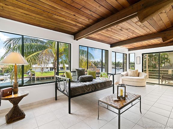 Crowned 'Casa Seabatical' and boasting 80 ft of prized water frontage with ocean access, this exquisite oasis delivers an exceptional South Florida lifestyle. Spanning two gracious levels with a versatile 4BD/3BTH layout, the Key West style home is idyllically situated on a quiet cul-de-sac 90 ft from the tranquil Intracoastal and minutes from Hillsboro Inlet with no fixed bridges. The perfect vacation home, primary residence, or income property, this supremely serene refuge spares no details and showcases dramatic 15 ft. open beam ceilings, sumptuous hardwood floors, a saltwater pool, manicured gardens, tasteful finishes/furnishings, a bonus room, and countless upgrades including a newly renovated kitchen and reimagined baths, NEW roof scheduled for September and more.