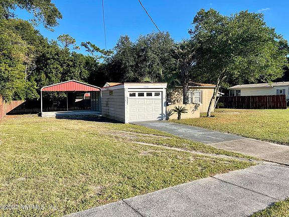 MULTIPLE OFFERS IN! Highest & Best DUE 11/4/22. Fantastic property for 1st time home buyers or rental investors! This block beauty has 3 bedrooms 2 baths plus a bonus room! As you walk through the front door, you will love the beautiful ceramic tiled flooring, new carpet in the bedrooms, new blinds and neutral paint throughout! The spacious kitchen/dining room features plenty of cabinets with a NEW stainless-steel refrigerator! NEW HVAC System, updated windows, NEW ROOF in 2021! The fenced back yard is huge and very private! Included in this sale are 2 industrial sized carports perfect for parking an RV or large boats, PLUS a storage shed! 1 car garage and palm trees are in front! Centrally located under 10 miles from the Jacksonville Beaches, St. John's Town Center, Downtown, and Stadium! Stadium!
