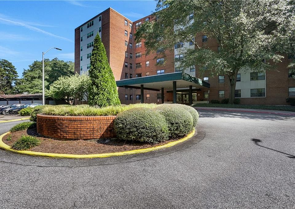 Welcome to one of the best locations in Buckhead! Beautifully renovated top floor unit with a view of the city and the pool with the morning light. You are walking distance to Buckhead Village and their many shops and restaurants. The popcorn ceiling has been totally removed throughout the home. Five new solid wooden doors have been installed in the home. Polished Ebony parquet floors and crown moldings complete the sophisticated unit. The completely renovated kitchen has all new stainless appliances including refrigerator, dishwasher, gas stove and built-in microwave. New custom white cabinets with soft close doors, granite countertops, and subway tile backsplash compliment the kitchen which looks into the living room. The home comes with a totally new bathroom featuring a European Style walk-in shower. There are two assigned tandem parking spaces. Laundry room with washers and dryers for your convenience can be found in the basement. The HOA is $422 monthly including heating, air conditioning, electricity, gas, water, sewer, pest control/termite bond, recycle and trash pickup, common area maintenance, landscaping and insurance. The Amenities include a swimming pool, patio and grilling area, clubroom, and storage bins. Beautiful new elevator cabs are on order and will be installed in 2026. Slaton Manor has a policy of no rentals, no smoking, and no pets. However, support dogs with an accompanying letter will be permitted. Truly, a very special home.