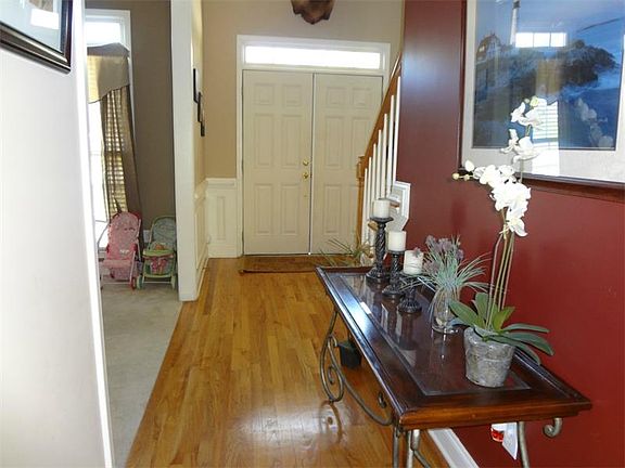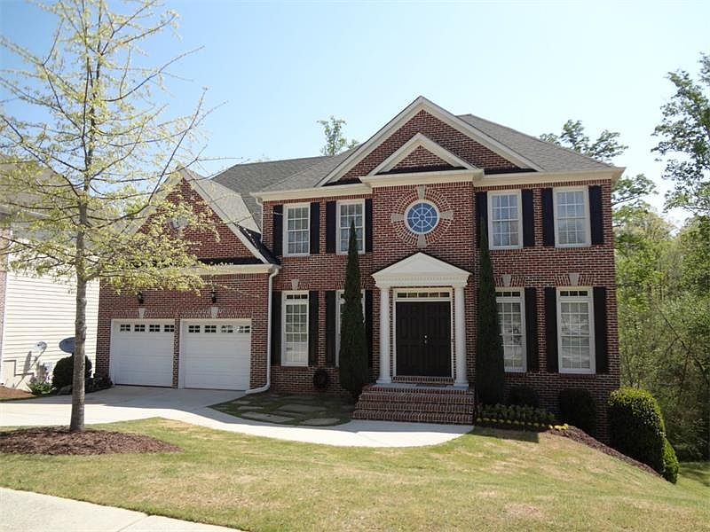 Minutes from mall of GA, this home has hardwoods and gorgeous, deep-toned stained cabinets in kitchen! New roof 2014. New hardwoods most of main. Double doors lead to master w/trey ceiling, bedroom-sized sitting room. HUGE master bath w/chandelier, his/her walk-in closets, jetted tub.Second bath oversized/two separate vanities. Upstairs Laundry. Unfinished daylight basement.Deck overlooks one-of-a-kind creek front turned into private, creek-side oasis w/prof landscaping.You will honestly think you're in a public park, but it is all yours!Pool/playground steps away.