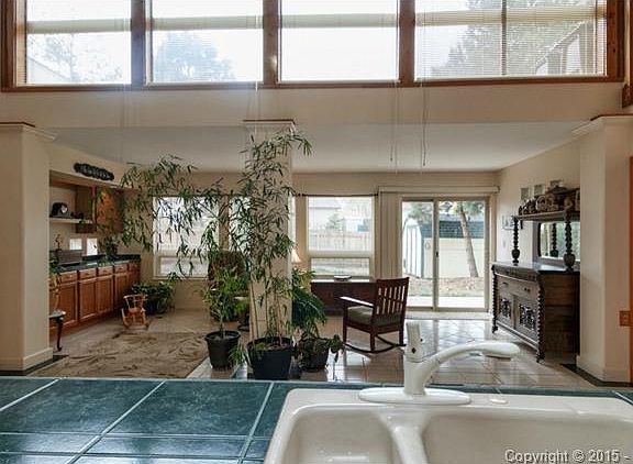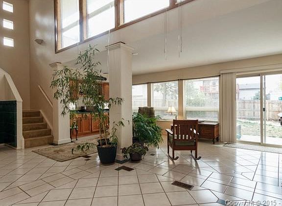 A real stunner in Briargate! This home features a unique layout with loads of windows and natural light, including several "glass block" window features located throughout the house. The majority of the main level has lovely tile flooring except for the cozy family room which has carpet and includes a gas fireplace and "bonus room" that opens to the back yard. There is a wood burning fireplace in the living room along with built in cabinets and an open layout that flows in to the kitchen and dining area. The upper level bedrooms overlook the living room and the upper level loft opens up to a large 10x32 private patio. Large backyard with patio, storage shed, passive solar panel system and underground sprinklers. Neat house!