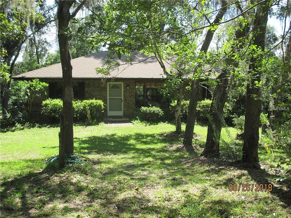Glenwood Retreat. 5.25 acres on 2 parcels of beautifully wooded, pasture, land. Enter on a well maintained public dirt road. (most of the road is paved from Grand Avenue.) Spacious, fully insulated cement walk out basement w/ teak paneling, brick fireplace & 1/2 bath . All block and brick construction. Seller says the roof has a 40 year shingle. The over sized garage with higher than normal ceilings is perfect for cars and a work shop. Electric Panel has generator plug in. Plus! there is a detached barn/garage/carport with electric and water that is piped via a second well/pump. Open/covered hay barn if you want to bring horses with a water spigot nearby. Enjoy BBQs from the spacious wood deck with a gorgeous view or from the mostly finished walk out basement patio below. The Master Bathroom has been recently updated, wood laminate flooring throughout most of the residence, vaulted ceilings on the main level. The great room and master bedroom have new paint. With a little bit of modernizing, this home could be totally spectacular and a great find as many of the area homes are larger and more expensive. Note the sq. ft living area includes the air-conditioned basement. Dimensions approximate. NOTE: Both land parcels must be sold together and included in the price herein. The two parcels are easily merged as 1 for financing via Volusia County and takes less than a week. If you are seeking the peace and privacy of a wooded retreat, this home is not to be missed! Call today.