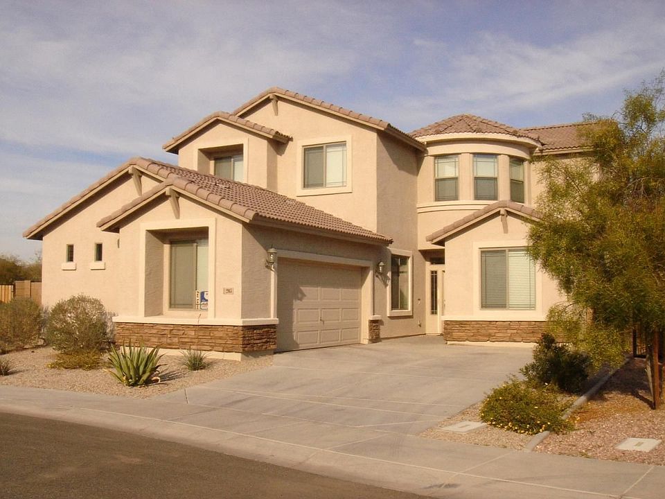 MANY UPGRADES IN THIS HOME - DIAGONAL TILE, UPGRADED CARPET, WINDOW COVERS, CEILING FANS, KITCHEN HAS CHERRY CABINETS, CORIAN COUNTERTOPS & STAINLESS STEEL APPLIANCES, SMOOTHTOP RANGE, VERY DRAMATIC STAIRCASE LEADING TO BEAUTIFUL LOFT. MASTER BEDROOM HAS A DECK WITH BEAUTIFUL MOUNTAIN VIEWS. 2 ADDITIONAL BEDROOMS UP AND A LARGE BEDROOM DOWN. CLOSE TO SCHOOLS. HOME IS APPROX. 2 MILES FROM I-10. SECURE LANDLORD/REALTOR IN STATE OF CA. NO SMOKING AND NO LARGE DOGS FOR OTHER PETS CALL LISTING AGENT.