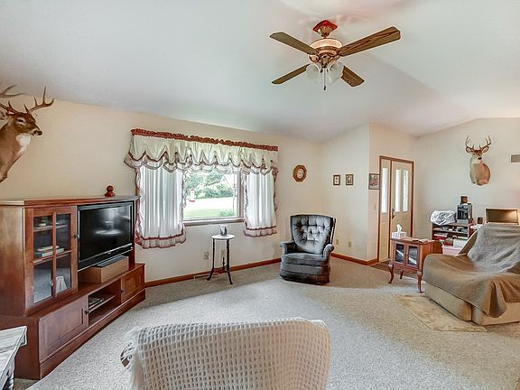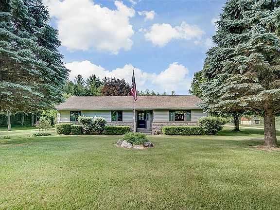 Wonderful location near town and lakes, just a couple of minutes west of Angola. A one-owner ranch home on full basement with attached two car garage, plus additional garage/workshop for cars, boats or equipment. 1.56 acres with mature shade trees. Full concrete drive and parking. Home has three bedrooms and two baths, and sports full basement with knotty pine family room. Unfinished portion of basement has daylight/access windows for future expansion. Walk to public access of Loon Lake!