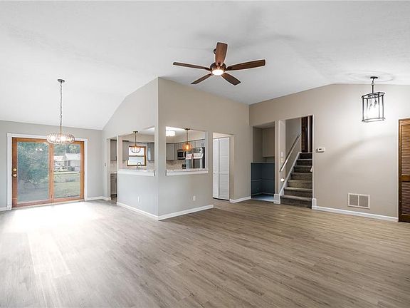 Move right into this spacious split-level home with vaulted ceiling, open-concept floor plan and surrounded by mature trees. This desirable home is freshly updated throughout in 2020. Renovations include all new kitchen with stainless appliances, beautiful cabinets, counters and flooring; upstairs bath with new double sinks, vanity, toilet and bath/shower; family room with new flooring, recessed lighting and access to huge laundry room with updated full bath, shower, toilet and vanity. Ceiling fans add comfort and style to vaulted living-dining area and all three bedrooms up which also have original hardwood floors. Additional features include fenced yard, attached oversized two-car garage, French doors with access to the rear patio and lots of storage. Visit today!