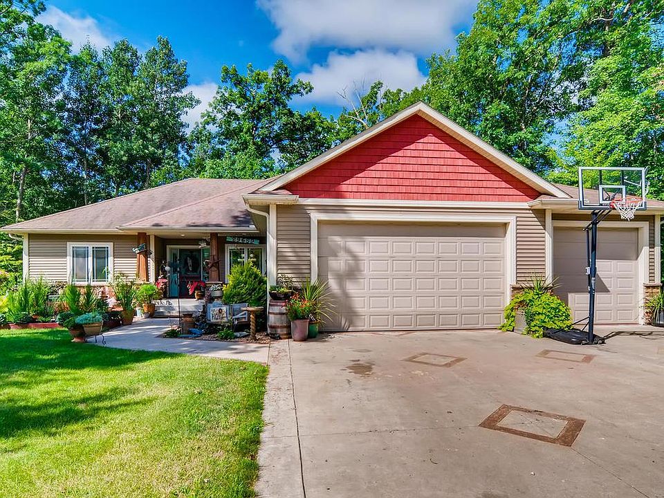 Hidden Forest Oasis. This 5 bedroom rambler w/walkout offers space & amenities for everyone in the family. Main floor living that includes: master suite w/private bath & walk-in closet, large mudroom/laundry, 2 additional bedrooms & 2nd bathroom â all encircling a spacious kitchen/dining living room area w/vaulted ceilings & rock fireplace. Beautiful knotty alder woodwork is used throughout the home. The finished basement features cork floors that maintain the temperature of the room, kept cozy by an additional stand alone fireplace. The over sized family room also provides a bar, office area, & tiled feature wall. Two additional bedrooms are over sized; one includes a walk in closet that rivals any master bedroom closet. Off of the main living area upstairs is an over sized deck that overlooks a raised garden, large backyard, & a protected forest. The privacy & quiet you can find on the back deck is truly something. Large 3 car garage also includes a drive through 3rd stall.