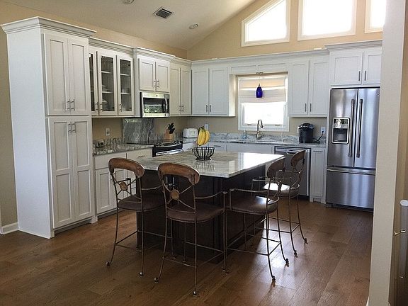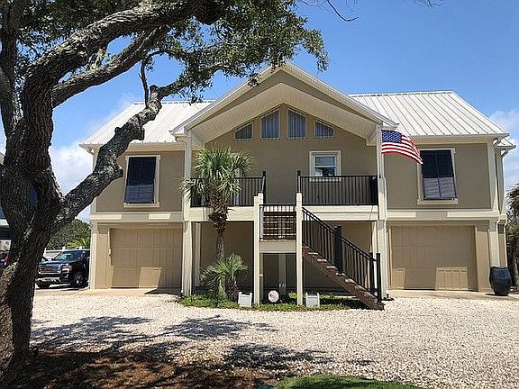 Immaculate 4 bed/3 bath Canal front raised cottage on Ono Island with covered Boathouse, Boat Lift and Jet ski Lift. 80 ft. on canal with views of St. John Bay from master bedroom and balcony. Open floor plan with split 3 bed/2 bath on main floor and large downstairs bedroom with full bath and sitting area. Downstairs bedroom can also accommodate 2 sets of bunk beds. Home remodeled with luxury Lauzon wood floors throughout main floor. Fully updated kitchen with new shaker kitchen cabinets, large kitchen island, granite countertops and stainless steel appliances. Custom made CLEAR hurricane panels which attach/remove easily or can remain up all year. Enclosed separate garages, storage/workshop, large circular drive and cement pad on west side for additional parking. Landscaped front/back yard with well and irrigation system. One of the highest elevations on Ono Island. No flooding. Ono Island is a gated community with 24/7 front gate security, a fully staffed Firemen/EMT facility, a recreational facility with tennis courts, a private boat launch and cement sidewalks to walk and bike throughout the island.