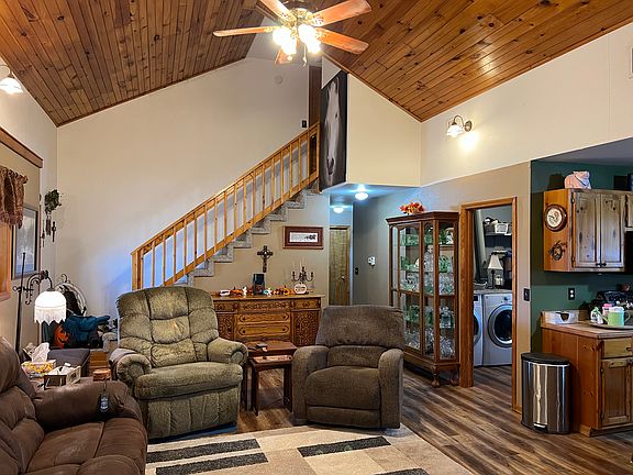 Just what you are looking for! If you want a great residence with acreage and facilities for having horses or some other type of livestock, this homestead is perfect. Upon entering the 3 bedroom, 2 bath home, you are greeted by a tall wooden clad cathedral ceiling and bright open living/kitchen area. The main floor includes 2 bedrooms, a full bath and a utility room. Upstairs, you will find an additional bedroom and a full bath. Appliances and central A/C are electric. Heat is sourced by either the propane furnace system or outside wood-burning stove. Rural water is supplied by Barton Co. Water. The very nice 6-stall horse barn is 30' X 30' with two 10' lean-to's housing an additional 3 stalls. The adjoining welded panel corral system rounds out the facility. The welded portions of the corral system stay with the property. The pasture is fully fenced with one cross fence allowing for pasture as well as a haying area. The entire property is composed of Class 2 Barco Loam which lends itself to the additional option of being utilized for tillable crop production. Please don't hesitate to call land Specialist Jeff Quade if you have any questions or to book a showing.