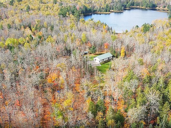 Exceptional opportunity on Mary Lake! This year round cabin is situated on 5.25 acres with over 240 feet of sandy, undeveloped shoreline. the cabin is divided into two sections, with one half serving as a garage and the other half living quarters. Notable features include high ceilings, Tongue and Groove paneling, stackable washer and dryer. pine paneled doors and a covered porch ideal for lounging in the shade. An additional bunkhouse with electricity rests on the property along with a cozy single occupancy cabin situated at the water's edge. Mature Red and White Pines dot the property, which is conveniently located near public lands. Mary lake is renowned for it exceptional pan fishing, with an abundance of fish visible right from the dock. The property offers the flexibility to either complete the existing cabin or construct a new, custom dream home!