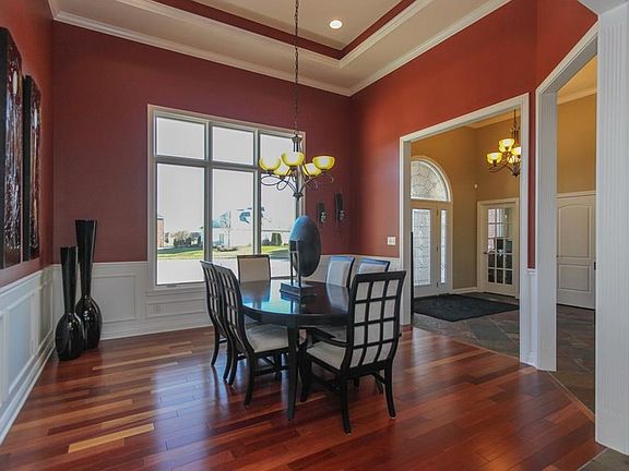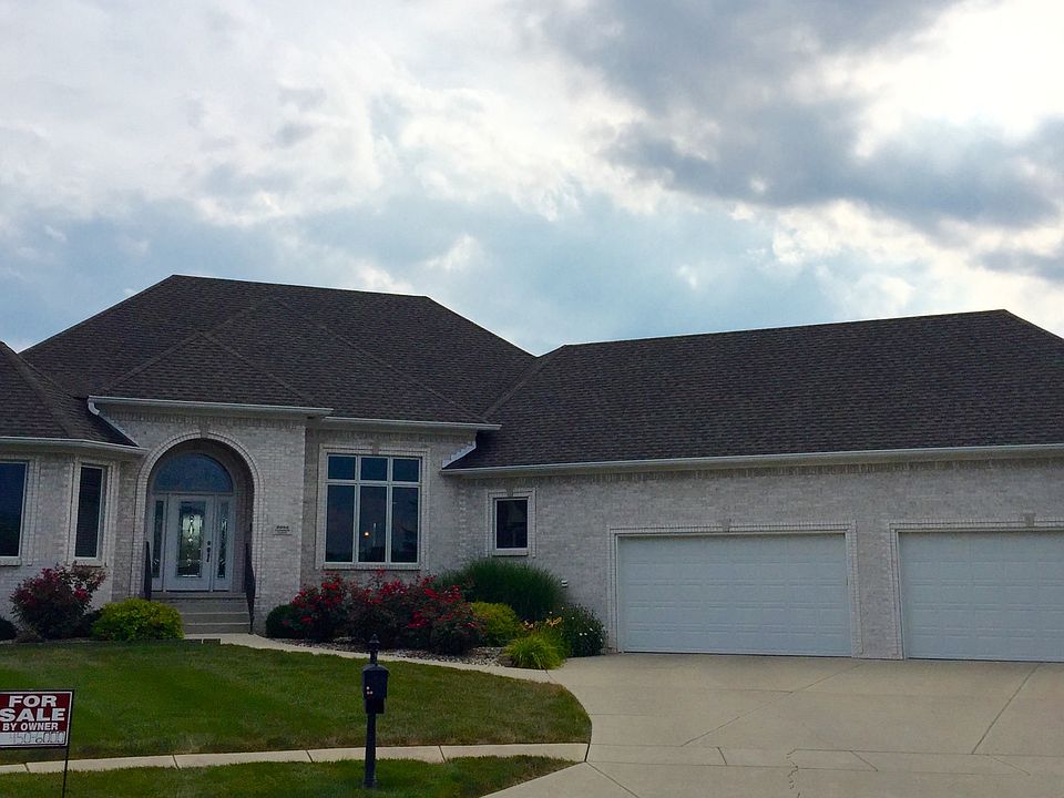 Luxury ranch w/walk-out basement & 4 car garage! Four bedroom home has custom cabinets, granite countertops, brazilian cherry hardwood floors, central vacuum system, intercom, laundry room w/lockers, breakfast area w/bar & sunroom. Master suite has separate vanities, walk-in shower, whirlpool tub, his/her closets & coffee bar. Basement features family room w/fireplace, wet bar w/appliances, theater room, game area, bedroom and 2 1/2 baths.