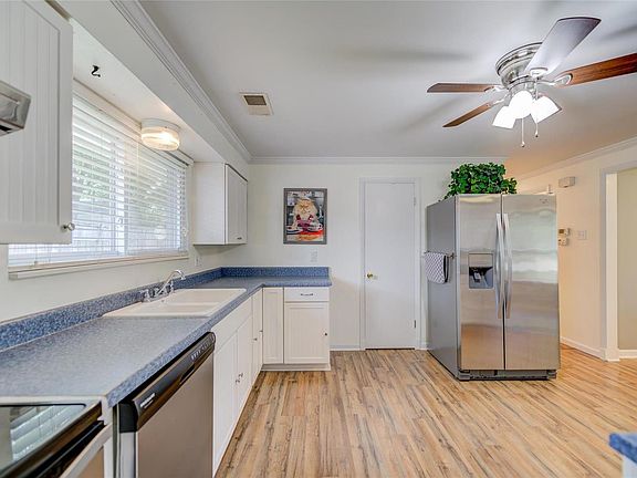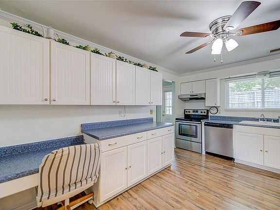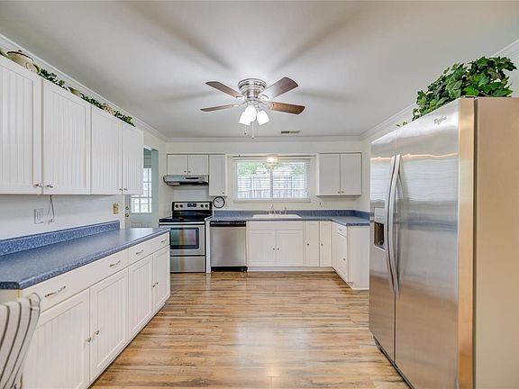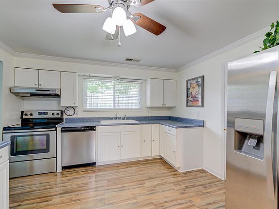 Wonderful 3 bedroom, 2 full bath ranch in perfect location, close to 3 major highways, schools & parks! Awesome kitchen w/ tons of custom white cabinets, stainless appliances, refrigerator stays, 2 pantries. Whole extra wall of cabinets, counter space & planning desk added to the kitchen, room for table & chairs or kitchen island. Separate dining room & spacious living room w/ cute bay window. HUGE garage w/ bump-out area & super long driveway could hold 6-8 cars. Both bathrooms have been updated, hall bath has Granite vanity, custom tile tub surround. Master bath has newer vanity, light, tile floor & tile tub surround. Main floor laundry room w/ washer/dryer staying. Crown molding in bedrooms, newer flooring in hall & 3 bedrooms, insulation added in attic & walls. Huge .43 acre prortfenced-in yard with tons of privacy, massive patio off the kitchen. Hurry in or it's gone!