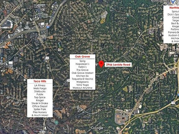 Super rare opportunity for substantial acreage in Oak Grove. 6 total acres available along with 1539 Lavista Drive or 5.6 acres without. Lot is located in Oak Grove Elementary School District - less than 1 Mile away - and is easily walkable to Vista Grove Plaza Shopping Center and all that Oak Grove has to offer. Lot includes private driveway access from Lavista Road and abuts Frazier-Row Park. This property has a R100 zoning that allows for approximately 8 lots if subdivided.
