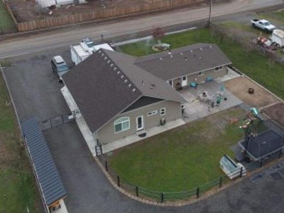 Great 2.51 acre property for your own mini farm that features a huge garden, orchard, year round spring fed creek, 2 barns, huge shop. Beautiful home updated in 2017 features 4bdrm/2bath,open concept living, dining, kitchen for easy entertaining. Kitchen w/granite counters, eat at island, pantry,large family room open sight lines to kitchen, beautiful laminate floors throughout main rooms, carpet in bdrms, laundry room/mudroom with custom cabinets, quartz counter,shoe storage bench,tucked away dog food bowl stations.Oversized large primary bdrm w/ensuite bath,double vanity,granite, oversize tub/shower combo w/dual shower heads,walk-in closet,patio access, 3 additional bdrms&bath w/double vanity, tub/shower combo.