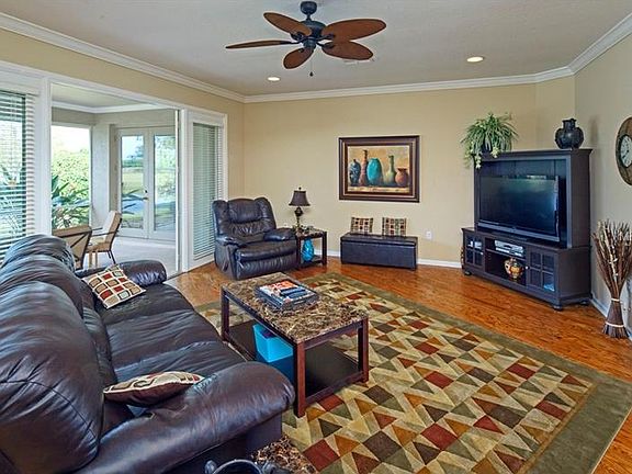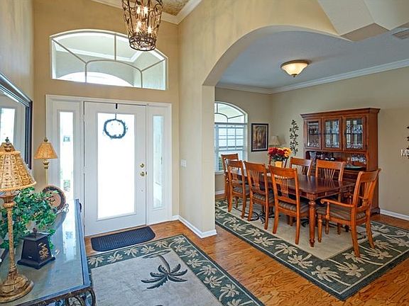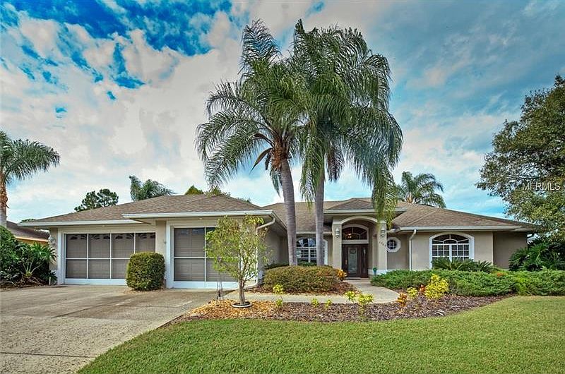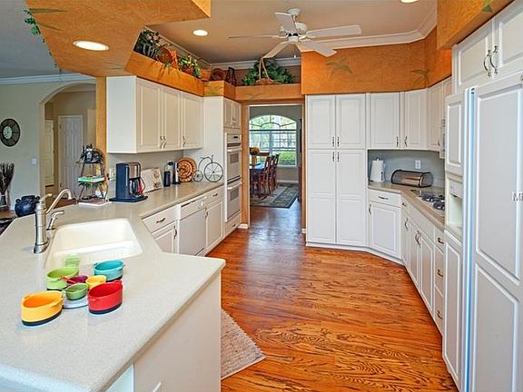 On the pond! Gorgeous waterfront views! Tranquil setting in gated golf course community. Custom Built! Hardwood Floors! Solid surface countertops! Eat-in Kitchen with views of water, sunsets and open pasture. No rear neighbors allows for extra privacy. Boasts 4 bedrooms and 3 baths with a well designed split bedroom plan. Jack and Jill bath in guest rooms. Formal dining area and open casual style great room. Master bedroom is designed with a large sitting area overlooking the water and mature landscaping! The 3 car garage is oversized and screened. Central vac, security system, water filtration system all add up to one fabulous custom residence! Tennis, golf and community pool minutes away. Plenty of room to add a private pool as well! Must see to appreciate!
