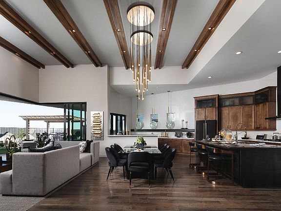 The inviting foyer with elevated ceilings, opening onto the expansive great room, dining room, and enormous covered patio. The well-appointed kitchen features two toned quartz countertops with a large center island with breakfast bar, plenty of counter and cabinet space, spacious pantry, and bright casual dining area. Secondary bedrooms feature walk-in closets and shared Jack-and-Jill bath with dual vanities. Call today to learn more about the stunning home! Disclaimer: Photos are images only and should not be relied upon to confirm applicable features.
