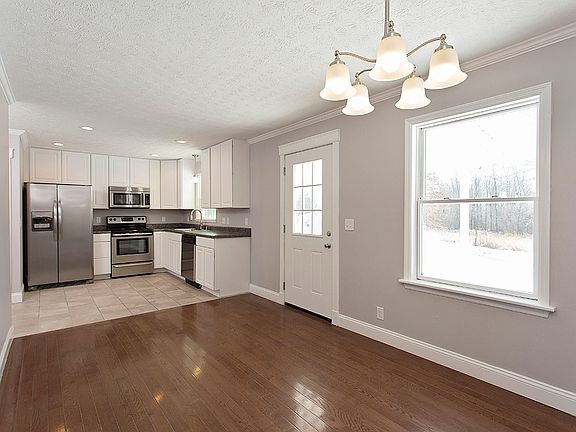 Sprawling ranch nestled on over a half acre! This 3br 2ba features a welcoming front porch, wood burning fireplace, hardwood floors, crown molding, new HVAC, updated kitchen w/ stainless appliances, update baths, new flooring, fixtures, and full basement! Covered back porch with beautiful country views! *Agent Owned*