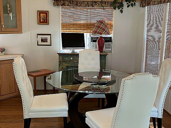 Beautiful home in tall pines. Located within 2 miles of the hospital and sitting in tall pines, this beautiful 1 bedroom, 1 bath 726 Sq ft mobile home is loaded with personality. Adjacent to the home is a fully finished 144 sq ft shed, with electricity, which could be that extra room or office. Home has a covered carport, 2 decks, front and back where you can sit and enjoy the relaxing sounds of the trees as you host gatherings with family and friends. Home comes fully furnished and is move-in ready. This home is located in Tall Pines RV Resort which is an age restricted park (45+), year-round community. Amenities include a clubhouse and laundry facilities. Co-op fees are just $105.00 per month, which includes water, septic and garbage. Electricity is billed separately. Passing a background check is mandatory before moving into resort. Make an appointment to view this incredible home today.