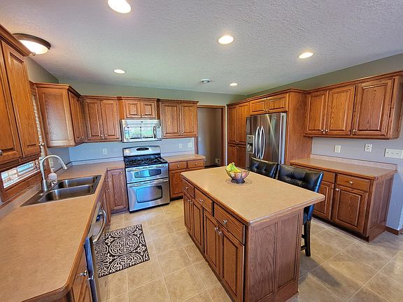 Two-story, four bed, four bath in beautiful sidewalk neighborhood. Home features a newly finished lower level, Fireplace, three-car attached garage with extra parking outside, large owners suite with private bath, three bedrooms on the upper level, large kitchen and main level laundry, open vaulted entryway, great city lot backing up to green space... FANTASTIC location, close to High School, Lakes Free Church, Ice Arena, Golf Course, and walking trails...must see!