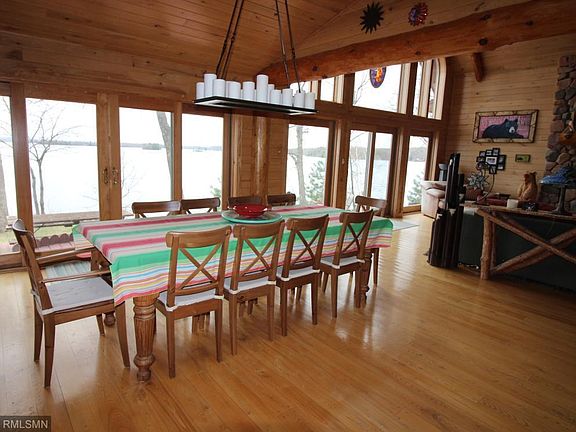 Enjoy lake living on beautiful Red Cedar Lake with 306 feet of frontage on the north end of the lake. This fine log home sits high on the lot and offers million dollar views from every room. The location provides the opportunity to have two docks and on the north side of the peninsula you will find a nice sandy swimming beach. This fine home has many special features among which include: soaring vaults, 2 story stone fireplace, main floor master suite, large sun room off the kitchen, and a wine cellar just to name a few!!! The home also includes most furniture, 22' Bennington pontoon, and a jet ski. Just bring your swim suit!!!