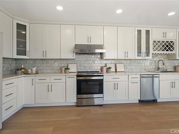 Welcome to this stunning single-level Top of the World home, situated on a generous 7500 sq ft lot with breathtaking and unobstructed panoramic ocean and Catalina Island views. This beautiful, “turn-key” home just recently completed an extensive interior renovation in addition to new professional landscaping. As you walk through the double entry doors, your eyes will be drawn to the mesmerizing and expansive ocean views directly in front of you. The extra wide foyer leads you to an inviting and open living room that features new luxury vinyl flooring throughout, a cozy wood-burning stone fireplace and sliding doors that allow abundant natural light and inviting access to the spacious ocean-view backyard. The living room flows seamlessly into the well-appointed kitchen, which boasts fresh white cabinets, quartz counters, designer backsplash, stainless steel appliances, a formal dining space with large windows and sliding doors that encourage alfresco dining, while enjoying your meal with a backdrop of the blue Pacific and golden sunsets. The spacious primary master suite features a completely updated en-suite bathroom with a large walk-in shower facing the ocean, double vanities, and all-new hardware. There are three additional generously sized bedrooms that share a full newly updated bathroom. The serene and private backyard is ideal for entertaining large groups, while taking in the breathtaking sunsets, city lights and Catalina Island views. Laguna Beach's top-rated elementary school and middle school are both within walking distance. Nearby Alta Laguna Park offers hiking and biking trails. A quick ride to downtown boasts world-class shopping, dining, art galleries, and renowned beaches to ensure this home is an excellent choice for those seeking the ultimate luxury coastal living and lifestyle.