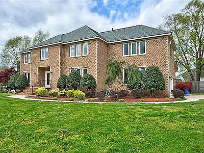 Our contract for the house fell thru and is back on market. The price has been adjusted as some cosmetic repairs are required. Welcome to an almost All-Brick home with less than 25% of wood siding in rear of home located in well-established Waterfront Neighborhood where boat slip with 10K lbs. boat lift occasionally become available for lease as well as purchase. This fine home is almost always glowing with natural light through its see through exterior doors and large windows in all areas of home. It has five bedrooms and three and a half baths and is little over 3600 square feet. In addition, it also has formal dining room and study on each side of inviting foyer. Study has beautiful built-ins and can be alternatively used as formal living room. It also has an additional large room with one mirrored wall which can be used as exercise/yoga room or playroom per your preference. Connected to foyer is large family room with beautiful marble and wood surrounded mantel gas fireplace. Kitchen has granite countertops and backsplash as well as abundance of cabinets with pullout drawers and pullout shelving in some cabinets and has two fairly large pantries. Two car garage has additional space for abundant storage. There is a wooden deck in backyard which has privacy fence and is small but big enough to have an in-ground pool if you desire. All five bedrooms are very spacious with primary bedroom has enough space to have seating area around gas fire place, it also has his and hers walk-in closets, bathroom with two shower heads in walk in shower, jetted bathtub, and is located on second floor along with three other bedrooms with built-ins and spacious laundry room. Second and third bedrooms have jack-n-Jill bathroom and fourth bedroom has a bathroom which can also be accessed by fifth bedroom which is on third floor, this bedroom can be teenagers delight for a hangout. This home has high ceilings and an interior balcony overlooking family room. This home is located minutes from one of Chesapeake’s top 3 high-school districts (Western Branch) and is centrally located between private schools such as Nansemond Suffolk Academy and Norfolk Academy. Pictures currently on Zillow are five years old. Do not forget to take the opportunity to come take a look at the property in person if you are in market to buy. There is also a three mile public trail nearby to enjoy daily walks or biking. All exterior doors and windows, garage doors were replaced few years ago. Roof was replaced in 2011 Upstairs A/C unit was replaced in 2015. And downstairs A/C unit was replaced in 2022 along with water heater. Buyers agent get 3%. Readily available for viewing at your choice of time. Call today!