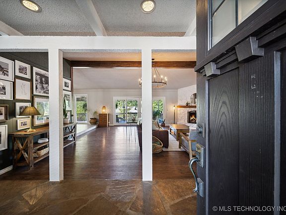 This home has been beautifully updated and well cared for! 3 bed / 2.5 bath PLUS true office! The exterior is just the beginning of the big welcome you receive at this home. Beautiful landscaping and landscape lighting usher you into the double front doors. A rich stone floor entry sets the stage for the large living area with vaulted ceilings, cozy fireplace and a beautiful view to the backyard. The floorplan provides plenty of room for comfortable entertaining with island seating in the kitchen and ample dining space just off the kitchen and open to the living room. The office has beautiful built ins and a large window view of the backyard. Step out onto the oversized back deck that provides plenty of extra space for entertaining, and the yard has plenty of space for play! The master bedroom is spacious and the master bathroom has been beautifully updated. The secondary bedrooms have large walk in closets and LVP flooring. The hall bathroom has also been updated! And the big items...roof approx 5 yrs old, and new HVAC and ductwork! Near 81st & Harvard, Jenks schools (NOTE* The open shelving in kitchen - cabinet doors have be re-hung)